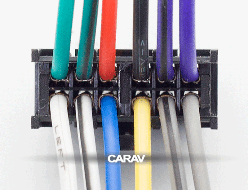 12-pin connector (female) <---> CARAV <---> ISO (male) Power & Speakers