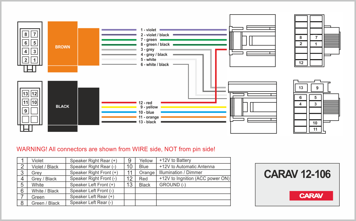 Connector OEM (female) <---> CARAV <---> ISO (male)