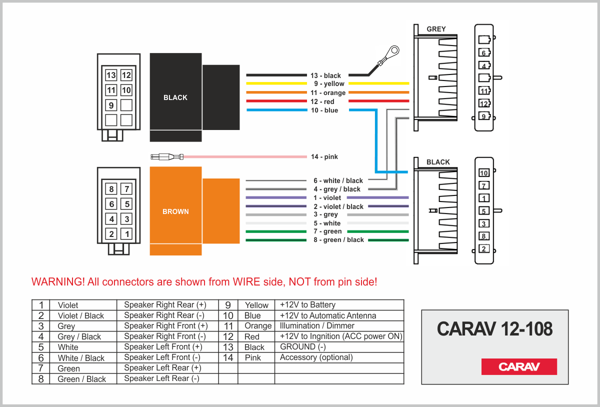 Connector OEM (female) <---> CARAV <---> ISO (male)