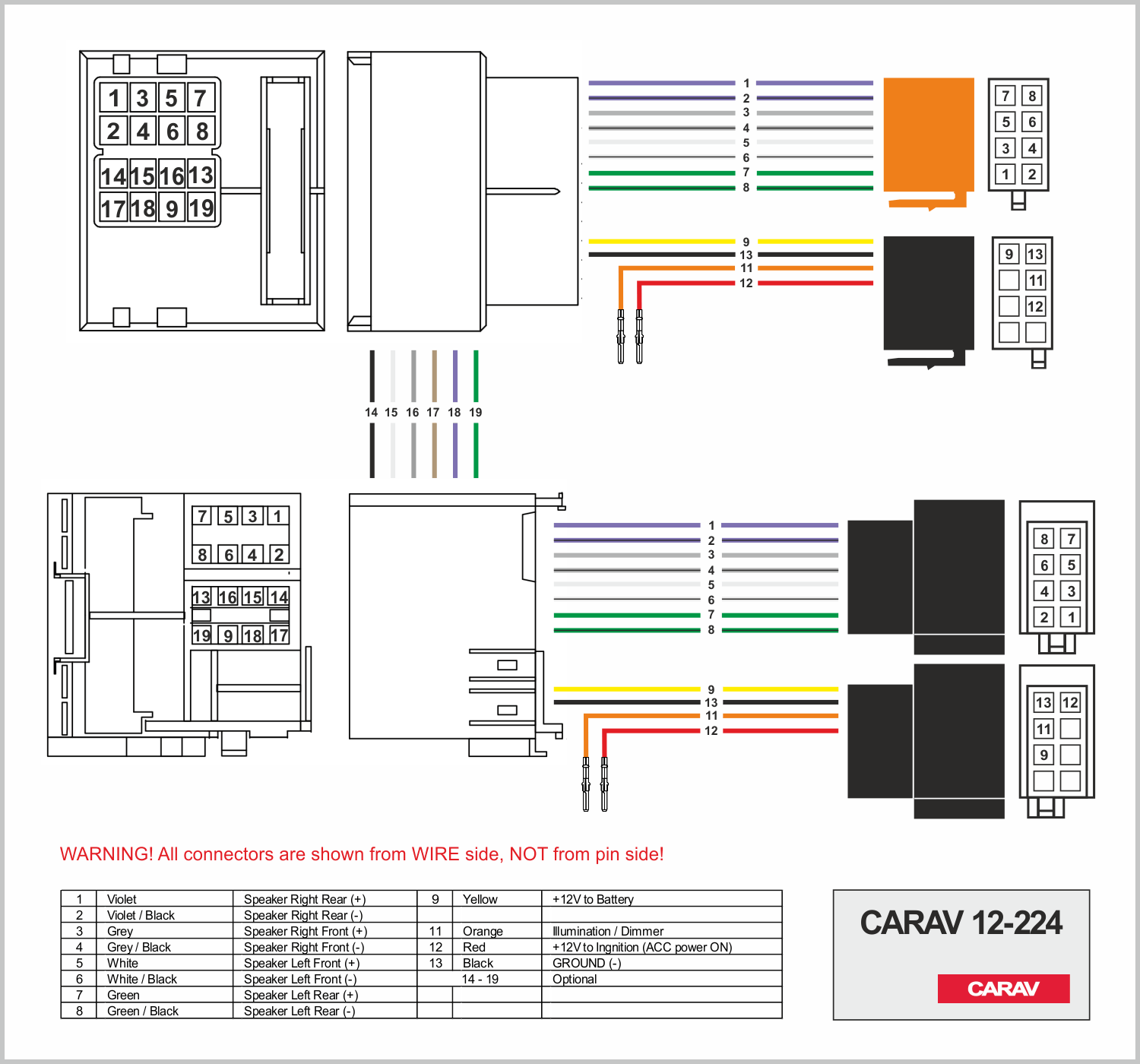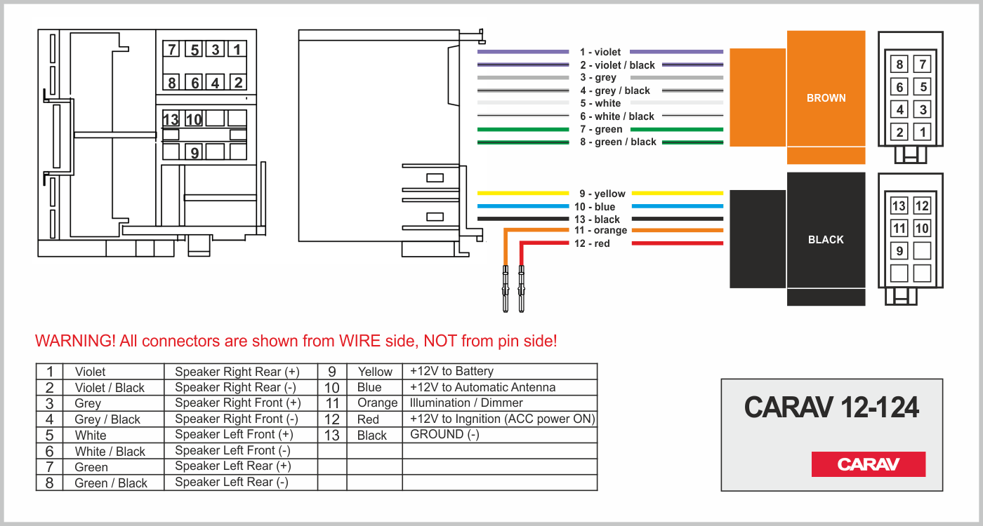 Connector OEM (female) <---> CARAV <---> ISO (male)